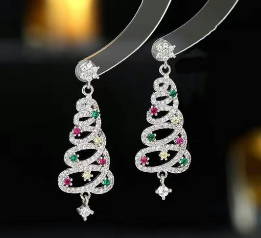 Snowflake Christmas Tree Earrings