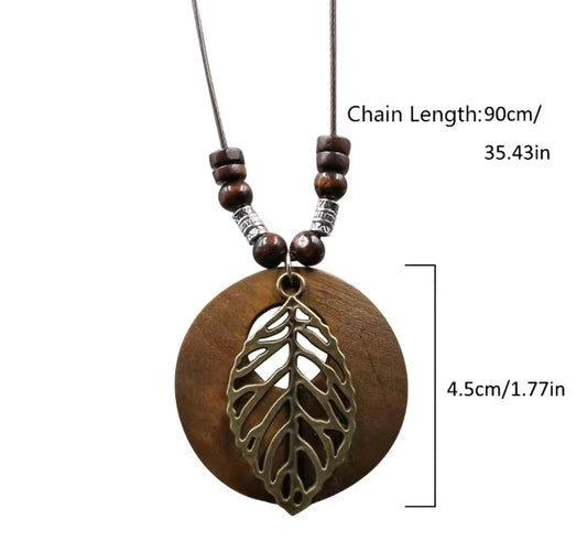 Wooden Pendant Necklace with Leaf